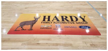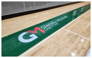 Showcase sponsors or pride in your team with adhesive vinyl court logos!