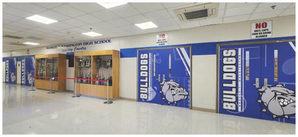 We offer the ability to put your logos and more on many surfaces including walls, windows, and doors.